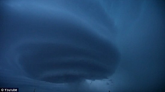 画面中,整个天幕仿佛被大地给吸住,云层从万米高空一圈圈环绕而下与大地接壤,阴暗的云卷铺满天地间。天空阴暗昏沉,像极了好莱坞大片里的“世界末日”。专家称,“超级胞”产生时空气是干燥的,因而不会妨碍龙卷风爱好者因暴雨的阻碍而无法靠近壮观的场面。