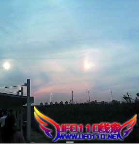 4日下午5点40分左右,市民蔡先生在东湖高新区看到天空出现了两个太阳,并拍下照片,一起下班的同事也一同目睹了这样的奇观,这样的景象持续了十多分钟。