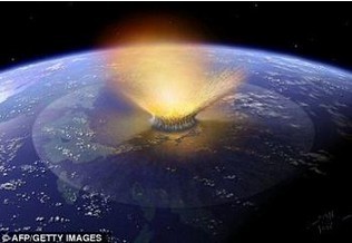 假设地球寿命为**长短,人类出现的300万年则相当于这天的最后一分钟,我们一定是具有高等智慧的地球最终住户(右图为模拟陨石撞击地球图)