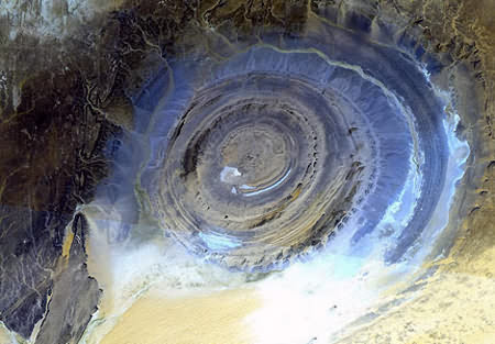 这只“眼睛”位于撒哈拉沙摸西南部的毛里塔尼亚境内。其实,它是一个巨大的同心圆。