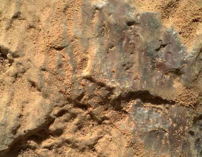 虽然火星上的岩石薄层并不是个新发现,但耶泽罗陨石坑中频繁出现的紫色斑点,让科学家抓破了头也想不出个所以然来。