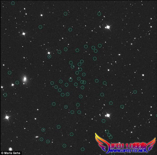 借助凯克望远镜上的DEIMOS设备,天文学家们能判断出哪些恒星是属于同一星系,此处已经将这些成员星用绿色圆圈标示出来 <script>Pagination(1,4,"t20110821_769737", "shtml","",10);