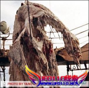 闻讯赶来的船长,见大家在欣赏一具腐臭的怪物,大发雷霆,他担心自己船舱里的鱼受到损失,命令船员们立即把它丢到海里去!幸好,随船有位矢野道彦先生,觉得这个发现不寻常,在怪兽抛下大海之前,拍摄了几张照片并做了相关记录。