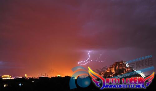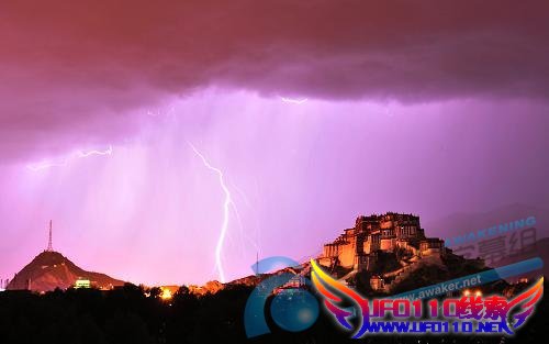 布达拉宫上空绽放闪电