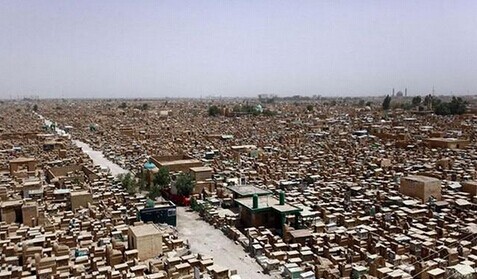 伊拉克境内有座“一眼看不到边”的墓地。这个有着1400年历史的古墓名叫“和平谷”,它位于圣城纳杰夫郊外,靠近宗教领袖Ali ibn Abi Talib的圣殿,里面长眠着500多万什叶派穆斯林。