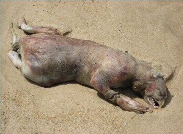 美国各大网络社区和博客上关于“蒙托克怪兽”的讨论非常热闹。有人说这是剥了皮的浣熊,有人说这是去掉壳的海龟,还有人认为这是美军恐怖的生化试验造成的“异形”。目前,获得支持最多的猜想是“死狗论”,看上去像鸟嘴的那部分可能是它的鼻腔。