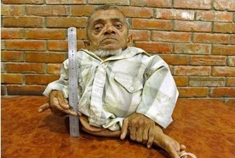 据俄罗斯“图片网”消息,尼泊尔一名73岁的老人纳乌身高仅40.6厘米,目前已前往加德满都接受世界纪录认证,有望成为世界上最矮的男人。