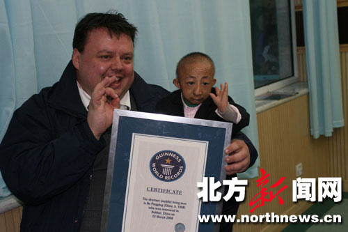 3月22日,来自英国伦敦的吉尼斯世界纪录副总裁、《吉尼斯世界纪录大全》总编辑克雷德·格兰德和吉尼斯世界纪录认证官吴晓虹在内蒙古医院体检中心,为2007年获得世界上最矮的成年人吉尼斯世界纪录的乌兰察布市化德县20岁小伙子何平平进行了复核。在经过3次站姿、躺姿测量以及综合身高测量之后,克雷德·格兰德在内蒙古医院当场宣布,何平平的身高是74.61厘米,正式成为世界上最矮的成年人吉尼斯世界纪录的拥有者,并且当场为何平平颁发了吉尼斯世界纪录证书。