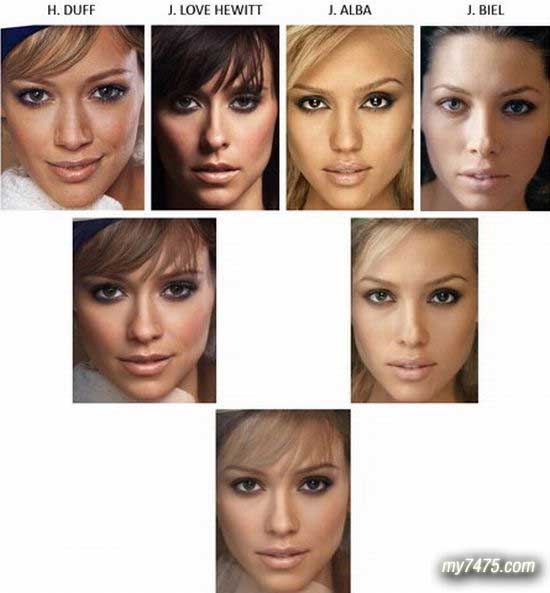 第二组女明星:Hilary Duff、Jennifer Love Hewitt、Jessica Alba 和Jessica Biel 照片合成后的虚拟美女。