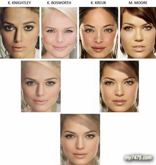 第三组女明星:Keira Knightley、Kate Bosworth、Kristin Kreuk 和Mandy Moore 照片合成后的虚拟美女。