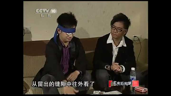 蒙眼识物,蒙眼识字,检验其实很容易,戴上眼罩后,把眼罩接触脸的地方用多些卫生纸塞住。或者你拿着扑克牌直接放在他脑门附近,不放在他眼睛水平线以下。原理其实很简单,戴眼罩之前使劲闭眼睛,戴上眼罩后用力猛地一下睁眼睛,用力就会带动皮肉向上动,眼罩也会随之上移,这样眼罩的下方会露出一条小缝隙,接下来你懂的。(本文来源ufo110线索网http://www.ufo110.net/)