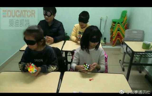 北京一家培训机构盲拧魔方的视频,全都是歪着脑袋的姿势