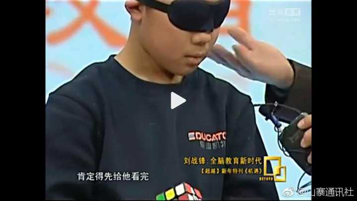 视频截图(文章尾部有完整版网络疯传的蒙眼识牌“神童”视频)