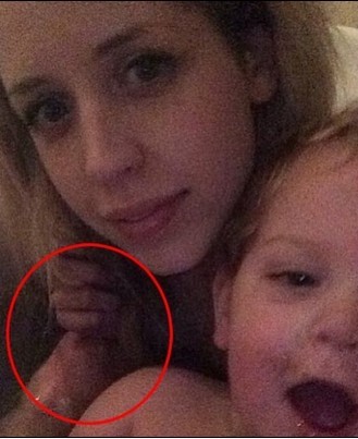 微博评论:英国著名摇滚乐明星鲍勃 格尔多夫(Bob Geldof)的女儿皮驰斯(Peaches Geldof)最近在家中抱着女儿自拍了一张照片,但在欣赏照片时,却意外发现她的肩膀旁出现一只诡异的手....看完新闻,你还敢自拍吗?