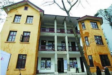 楼上有一个恐怖的“人型疤痕”,是当时楼里的一个孤独的守夜老人被火烧死后残留的油?形成,另外楼里的国民党特务标志(呈齿轮加箭头状)也非常显眼。