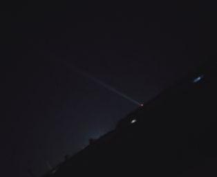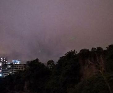 七月十三号,暑假的晚上八点五十一二分,我像往常一样在窗户旁吸烟,看到以前从来没有见过的棍状亮光,它不会动,没有发出任何声音,我看到后拍了两张照片,之后继续吸烟,吸了至少十几分钟,然后我就关了窗户,拉上窗帘,直到我拉上窗帘,那东西一直都在,之后的晚上,我再也没有见过那东西。