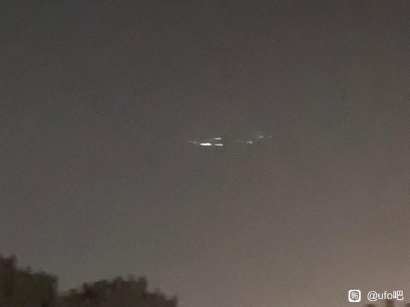 发着绿色光悬停,中间闪烁紫色光持续了十几分钟后消失,手机拍的,像素一般!