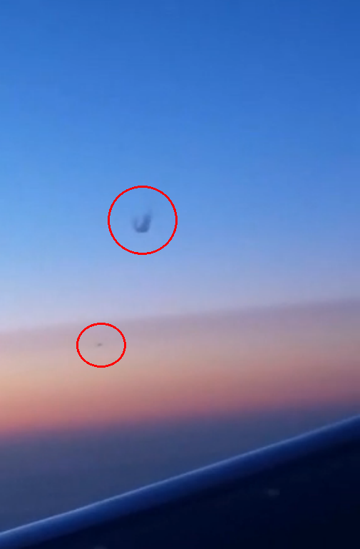 笔者分析,从形状来看,不明物体不大可能是飞机,因为没有机翼,就连结构都像是半透明的,如果是飞机,离得这么近应该能看清楚结构,可是,视频中的两个物体轮廓模糊,但这种模糊不是拍摄造成的,而是物体本身似乎在“伪装”;另外,能以这么快的速度在这么高的高空飞行,也不大可能是航拍器或其他遥控飞行器;难道,真像目击者所陈述的那样,是导弹?也不大可能,飞机如果遇到近距离的攻击性武器,理应采取紧急闪避措施,但该飞机却没采取任何措施。