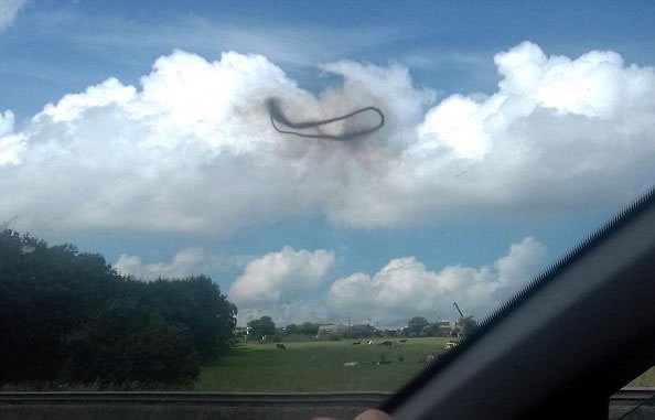 因此开始有人猜测是 UFO 飞过的痕迹,《UFO 调查手册》作者 Nigel Watson 表示,是附近有人发射加农炮后产生的浓烟。