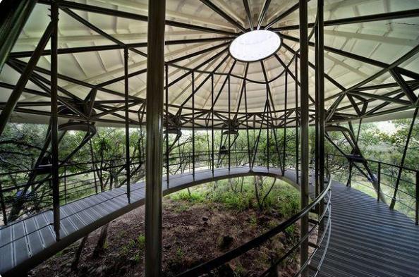“为了不对原始环境和遗址造成破坏,我们设计了一个类似昆虫的结构,隐藏在洞穴周围的树木中”。“它的八条活动腿被钉在白云岩上,这样,一旦该建筑达到了它的目的,它就可以被移走,而对遗址造成的破坏将小于一张A4纸。”