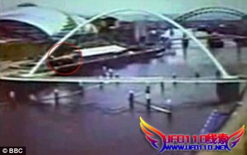 8月6日,节目主持人科林-布瑞格斯(Colin Briggs)在播报早间新闻时,大屏幕上纽卡斯尔市中心泰恩河的实时摄像机显示一个不明飞行物体迅速飞向天空。这个UFO飞行物出现在屏幕的左下侧,启动飞行穿过纽卡斯尔千禧年桥的拱形结构,最后消失在屏幕的右上方。