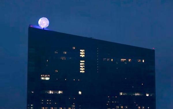 网友们集思广益的力量是惊人的,就在两派支持者网上吵翻了的时候,有位专门研究UFO的专家找到了这个UFO真实身份最有可能的解释,那就是这个蓝色的UFO极有可能是一个酒店大楼顶端的大型蓝色LED灯球。